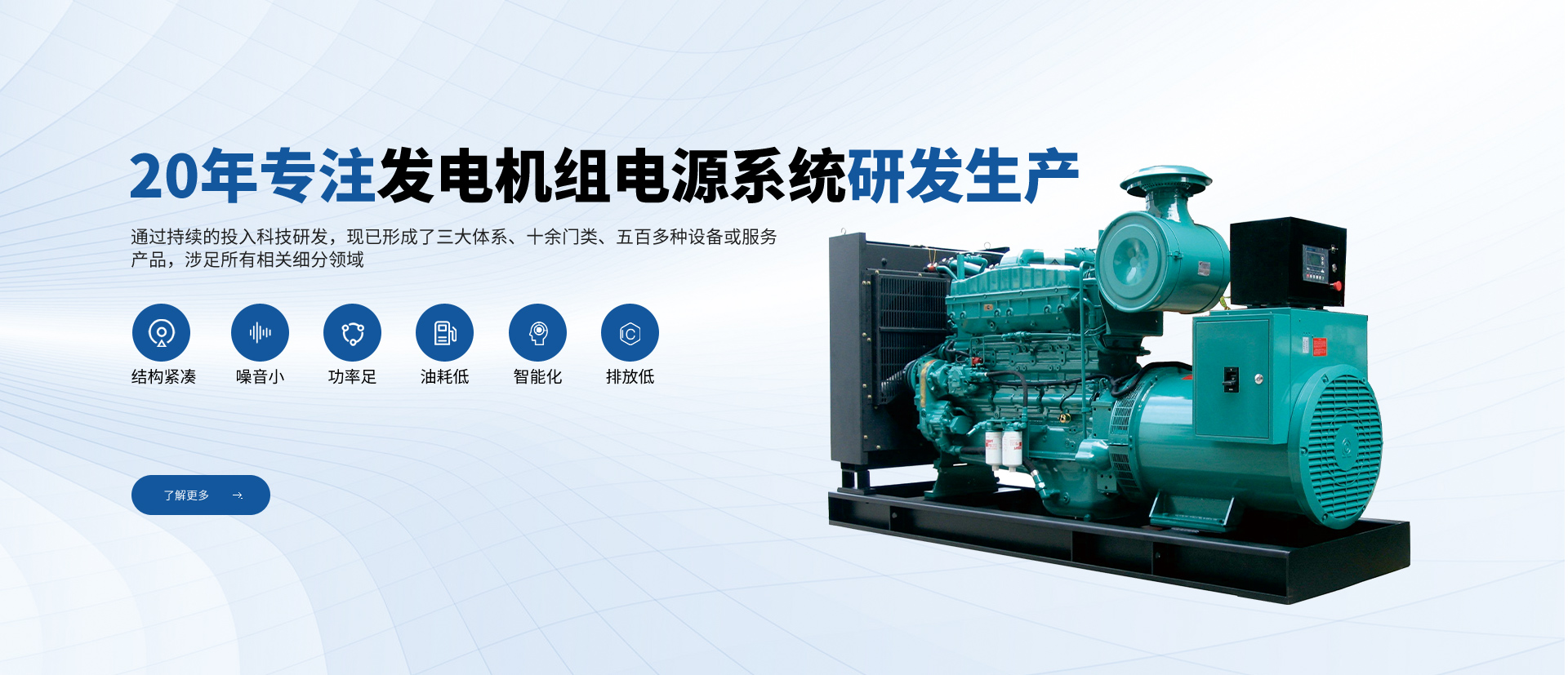 公司一直專(zhuān)注于高品質(zhì)發(fā)電機(jī)組及配套設(shè)備的研發(fā)、生產(chǎn)、銷(xiāo)售和售后服務(wù),致力于為用戶提供完美的產(chǎn)品和服務(wù)。從全球知名配套廠商優(yōu)選零部件及組件,優(yōu)勢(shì)組合,打造名牌發(fā)電機(jī)組產(chǎn)品。公司在全國(guó)設(shè)立多處銷(xiāo)售服務(wù)網(wǎng)點(diǎn),體系遍布全國(guó)大中城市。