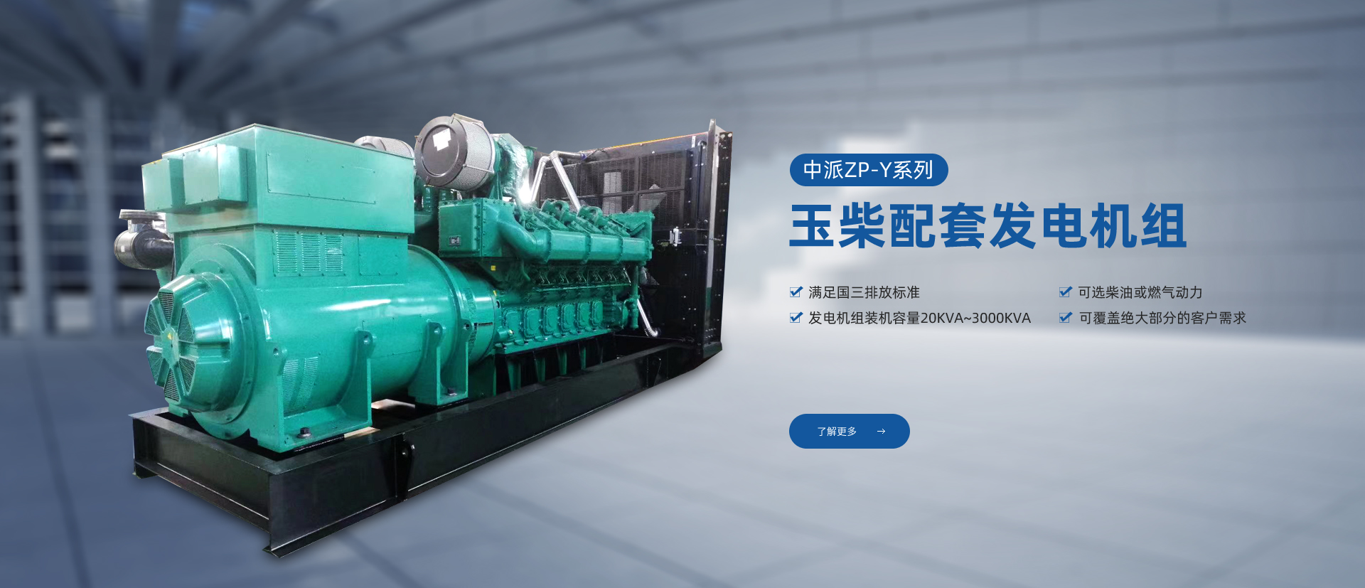 產(chǎn)品特點(diǎn):中派ZP-Y系列玉柴發(fā)電機(jī)組系列機(jī)組采用廣西玉柴機(jī)器股份有限公司生產(chǎn)的YC系列發(fā)動(dòng)機(jī),滿足國(guó)三排放標(biāo)準(zhǔn),可選柴油或燃?xì)鈩?dòng)力,發(fā)電機(jī)組裝機(jī)容量20KVA~3000KVA,可覆蓋絕大部分的客戶需求。